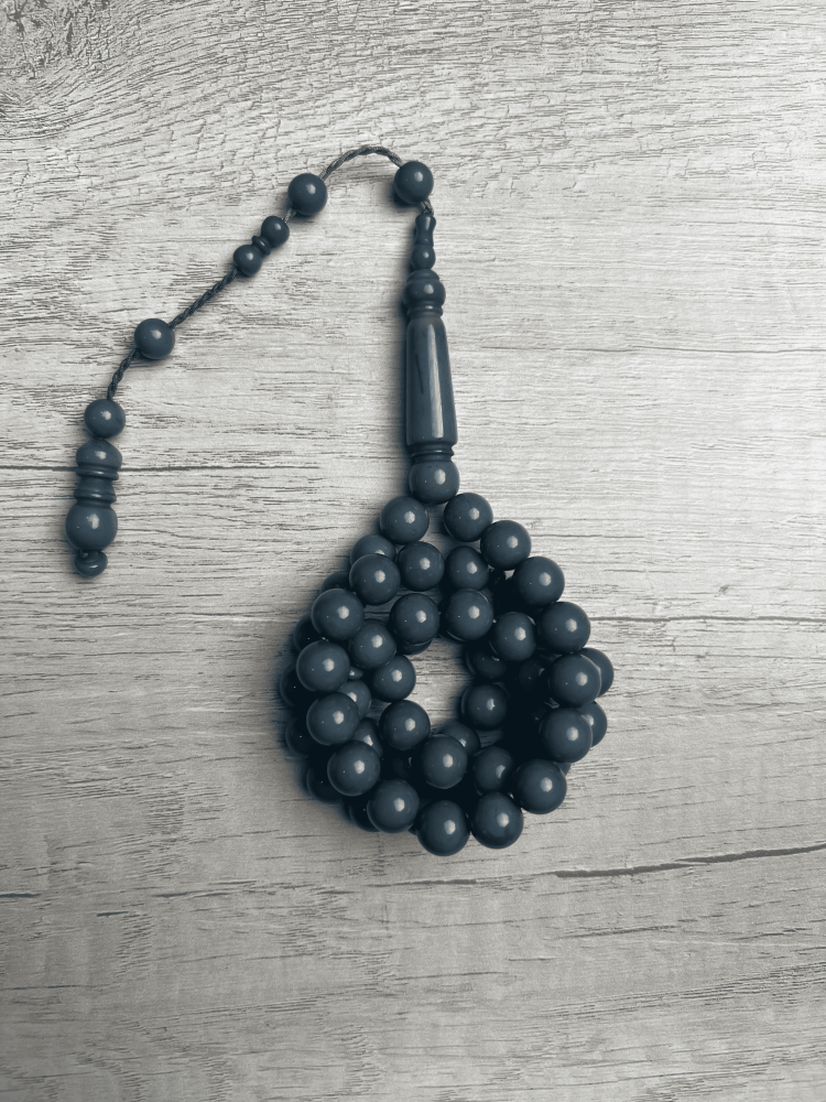 مسبحة فاخرة بلون رصاصي أنيق يعكس الهدوء والرقي. مصنوعة من خام البكلايت عالي الجودة لتمنحك خفة في الاستخدام وملمسًا ناعمًا مريحًا في اليد.